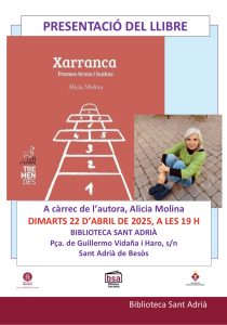 La tremenda Alicia Molina presentarà el seu poemari Xarranca · poemes breus i haikus a la Biblioteca Sant Adrià.
