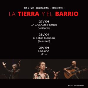 Gira pel País Valencià de l’espectacle poètic-musical La tierra y el barrio a càrrec dels tremendus Danilo Facelli, Hugo Martínez i Ana Alfaro.