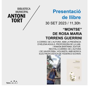 La tremenda Rosmarí Torrens presenta el poemari Montse acompanyada pel violinista Xavier Riba i amb la música electroacústica de Federico Echave.