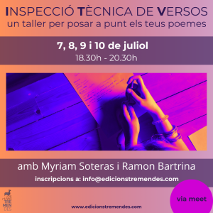 Ja et pots inscriure a un nou Taller d’Inspecció Tècnica de Versos. A cada sessió treballarem els pomes que portis.